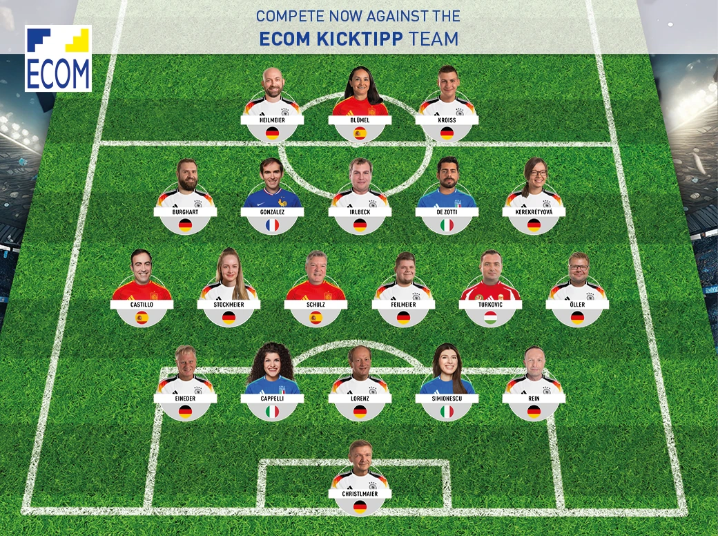 From June 14th to July 14th, 2024, the men’s football European Championship will take place in Germany. If you want to showcase your football knowledge while winning masterful prizes, you can actively participate in our prediction game. Eligible to participate are exclusively customers and employees of ECOM Trading GmbH.